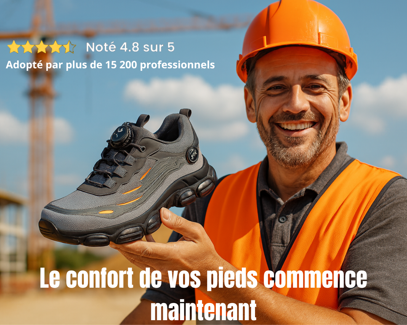 Je marche plus de 15 000 pas par jour, et je ne ressensplus aucune pression ni brûlure.Honnêtement, je n’imaginais pas qu’une chaussure de sécurité pouvait être aussi agréable.