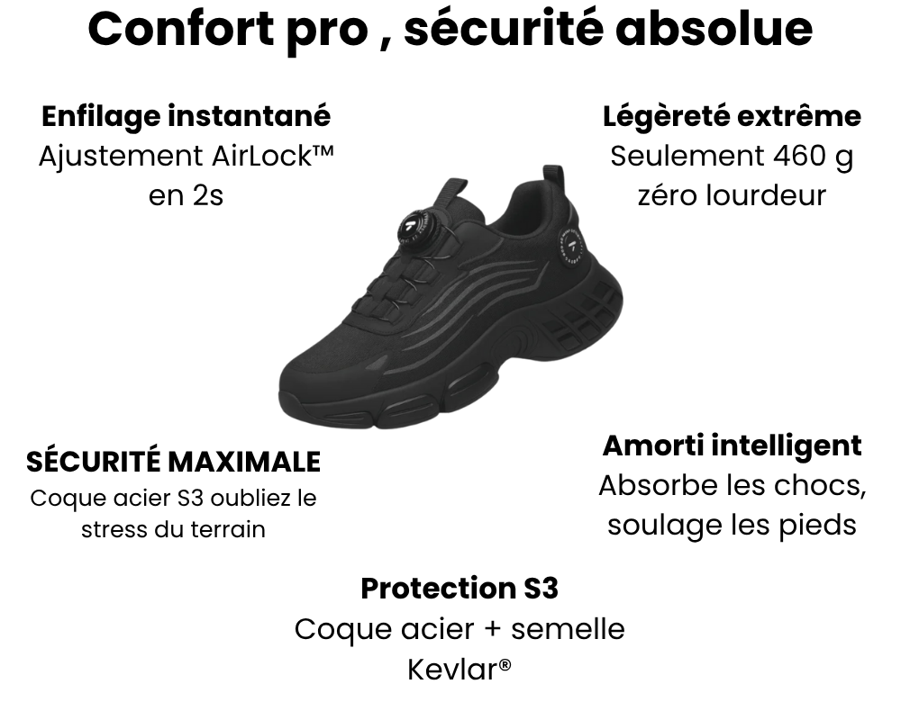 Je travaille en entrepôt et je voulais des chaussures solides Les AIRGRIP™ sont parfaites : confort, légèreté et design moderne. Je ne redoute plus mes longues journées, et mes collègues me demandent souvent où je les ai trouvées !